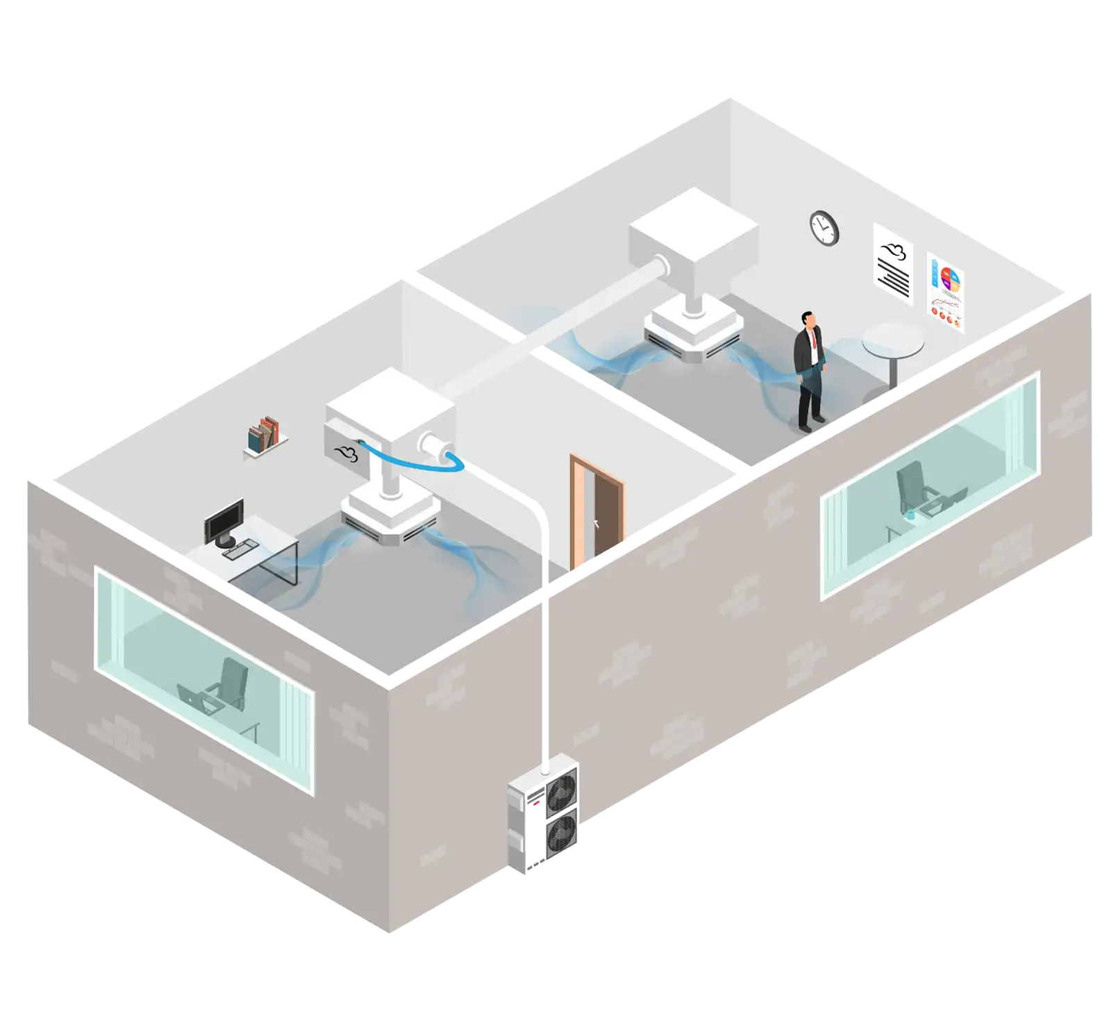 Wij installeren het geursysteem op de meest geschikte manier: volledig weggewerkt, stand-alone of geïntegreerd met bestaande systemen. Slimme besturing via ons smart control system zorgt voor maximale flexibiliteit en effectiviteit.